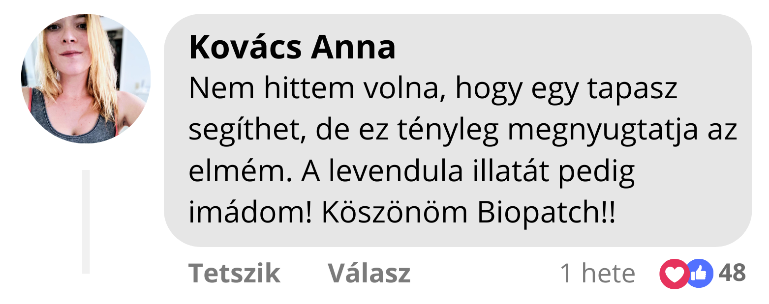 „Először szkeptikus voltam, de ez a tapasz tényleg csodát tesz. Sokkal gyorsabban elalszom, és reggelig nyugodtan alszom.”